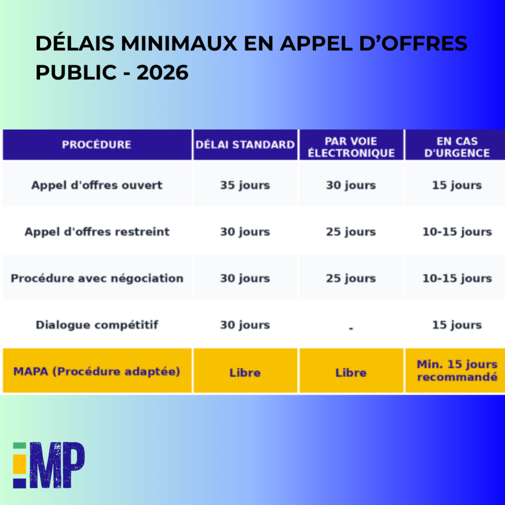 - Délais minimaux de réception conformes à la procédure