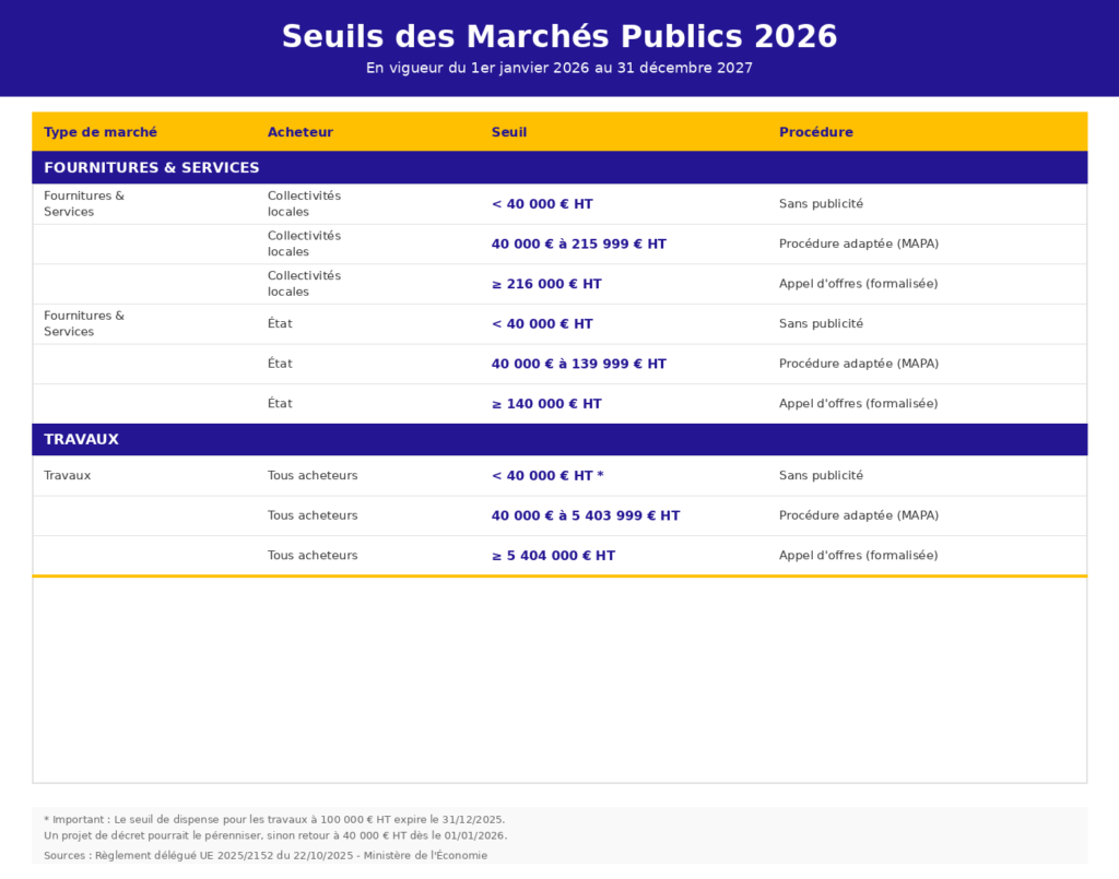 Quels sont les seuils des marchés publics en 2026 ?